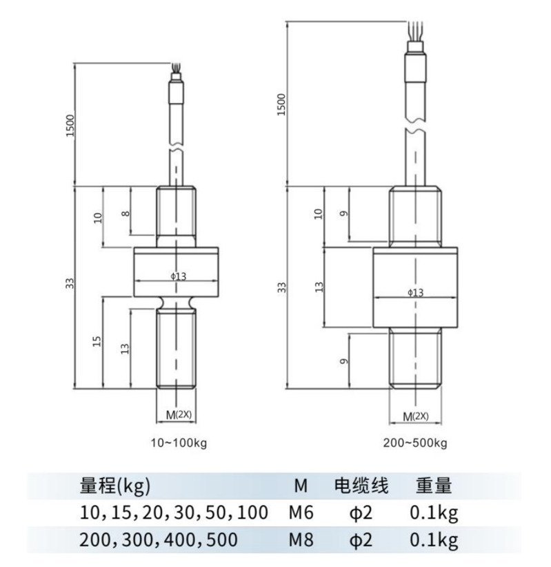 膜盒式拉壓力傳感器結構緊湊,綜合精度高,長期穩定性好,動態響應頻率高,優質不銹鋼材料。膜盒式拉壓力傳感器以**膜盒狀彈性體**為核心,原理是拉力或壓力作用使膜盒產生形變,帶動應變片電阻變化,經轉換輸出與拉壓力成正比的電信號,可雙向測量力值。特點:結構緊湊,能同時測拉力和壓力;量程較小(通常幾公斤至數百公斤),精度較高;抗沖擊性較好,適合輕載雙向力檢測場景,如小型裝配力測試、按鍵力度監測等領域。